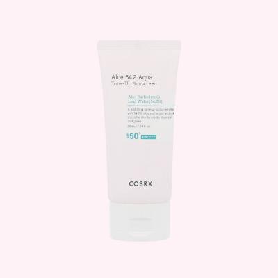 Tonujący krem do twarzy z filtrem przeciwsłonecznym SPF50+ PA++++ na bazie wody z aloesu. Krem skutecznie chroni skórę przed promieniami słonecznymi UVA i UVB, dodatkowo działa rozświetlająco nadając skórze naturalnego blasku. Nawilża skórę i ma właściwości kojące.