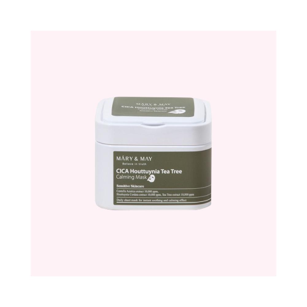 Maseczki w płachcie o działaniu kojącym z zawartością ekstraktu z wąkrotki azjatyckiej, pstrolistki sercowatej (Heartleaf) oraz drzewka herbacianego. Maseczki łagodzą skórę i działają przeciwzapalnie. W pudełeczku znajdziesz aż 30 masek!